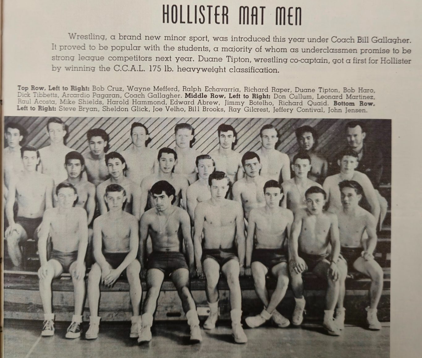 Hollister Haybalers first ever wrestling team 1954