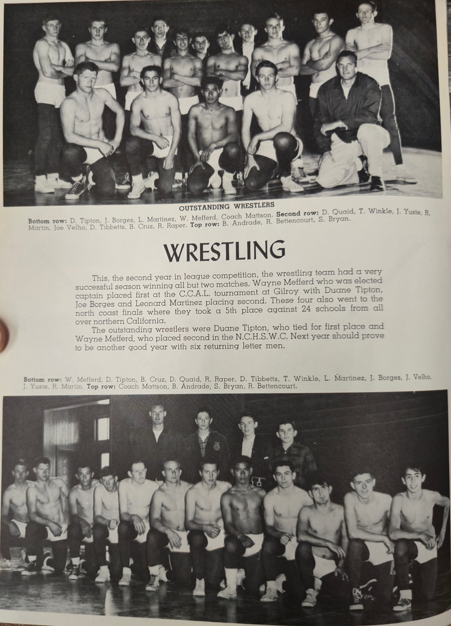 Hollister Haybalers first ever wrestling team 1954